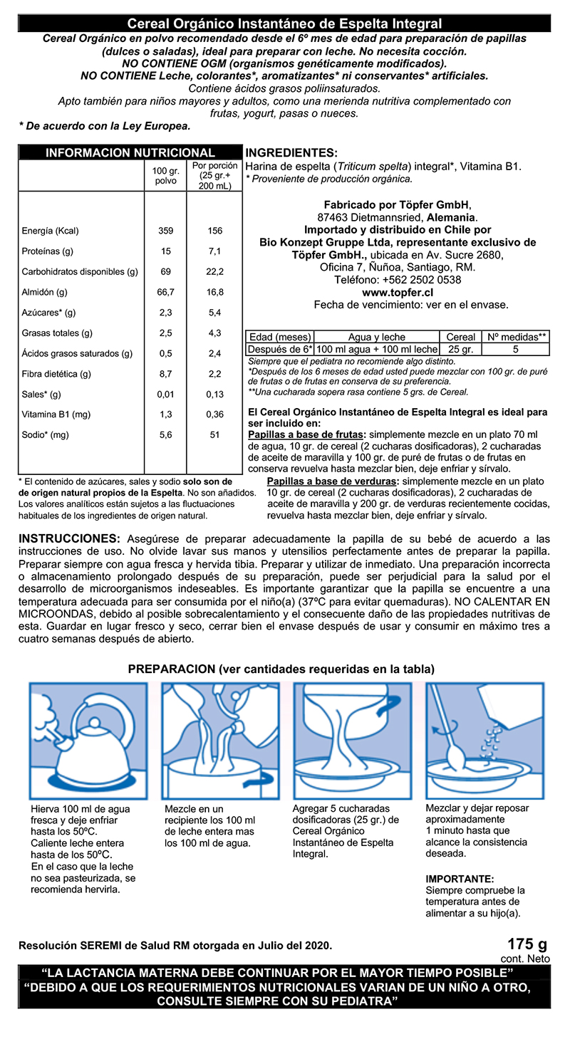Töpfer ChileCereal Orgánico Instantáneo de Maíz con Zanahoria. 175 gr.