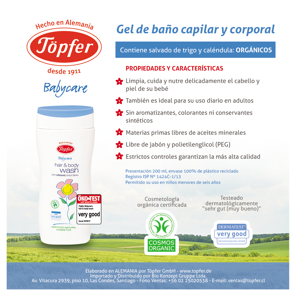 - Limpia, cuida y nutre delicadamente el cabello y piel de su bebé.