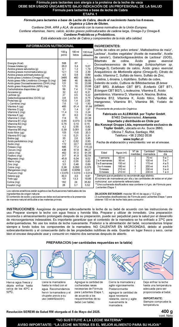 - Leche de Cabra Etapa 1 está elaborada con leche y componentes de la más alta calidad.