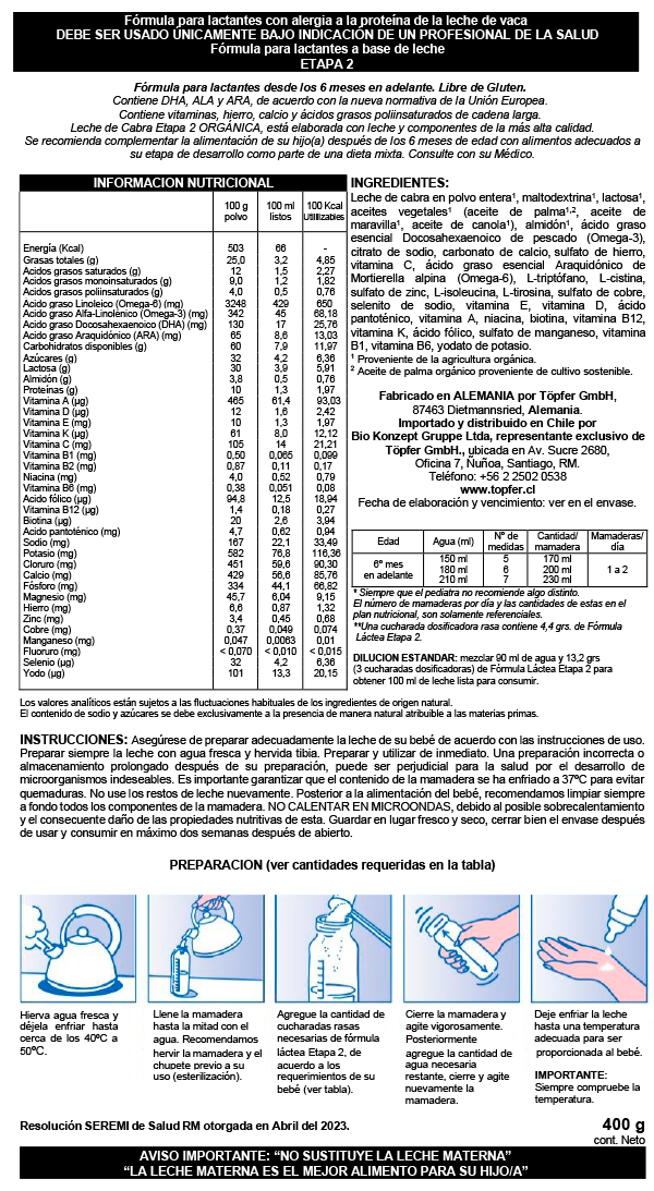 - Leche de Cabra Etapa 2 está elaborada con leche y componentes de la más alta calidad.
